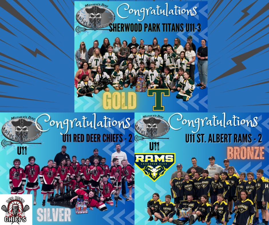 Congratulations for earning GOLD Titans U11-3 SILVER Red Deer Chiefs U11 BRONZE St Albert Rams U11-2