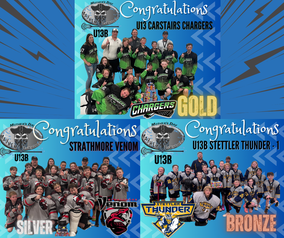 Congratulations U13B teams earning GOLD Carstairs Chargers U13B SILVER Strathmore Venom U13B BRONZE Stettler Thunder U13B-1